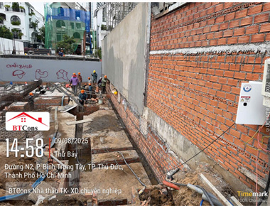 Bước 3: Thi công xây dựng: Tiến hành thi công phần thô, bao gồm móng, khung, sàn... với đội ngũ thợ lành nghề, giám sát chặt chẽ.